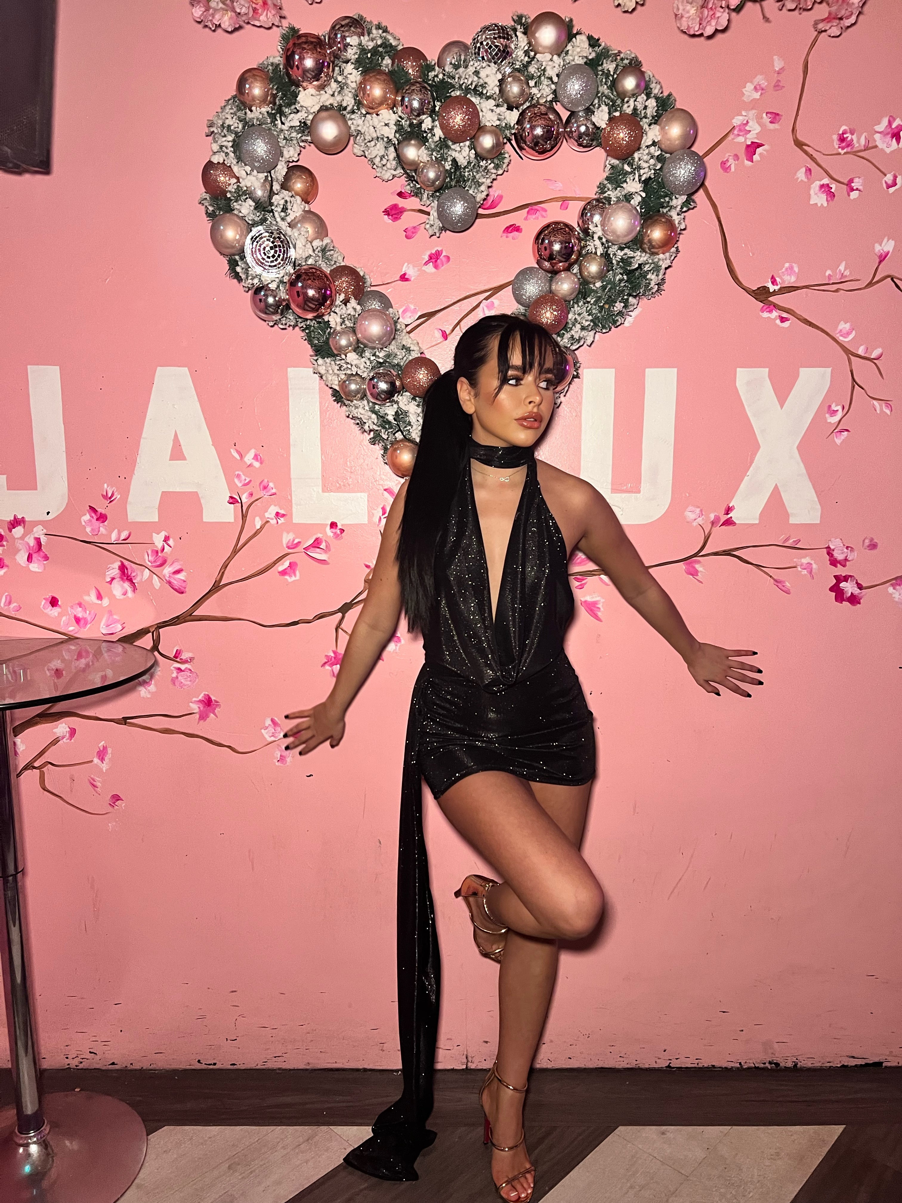 Glitter Cowl Neck Drape Dress