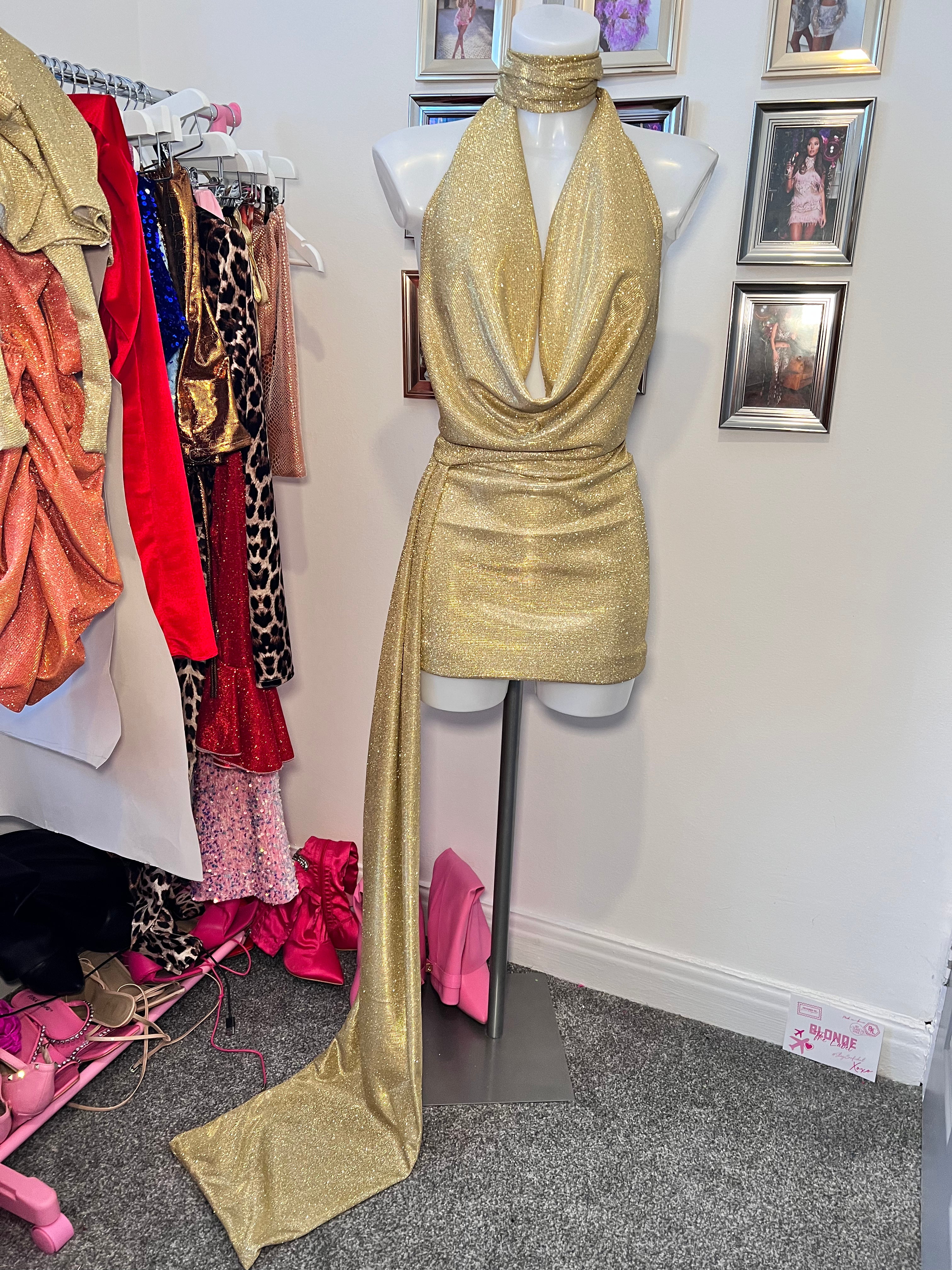 Gold Glitter Cowl Neck Drape Dress / Made to order