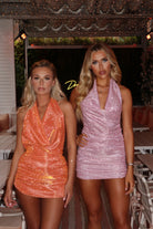 Orange Glitter Ruched Cowl Neck Dress / Made to order