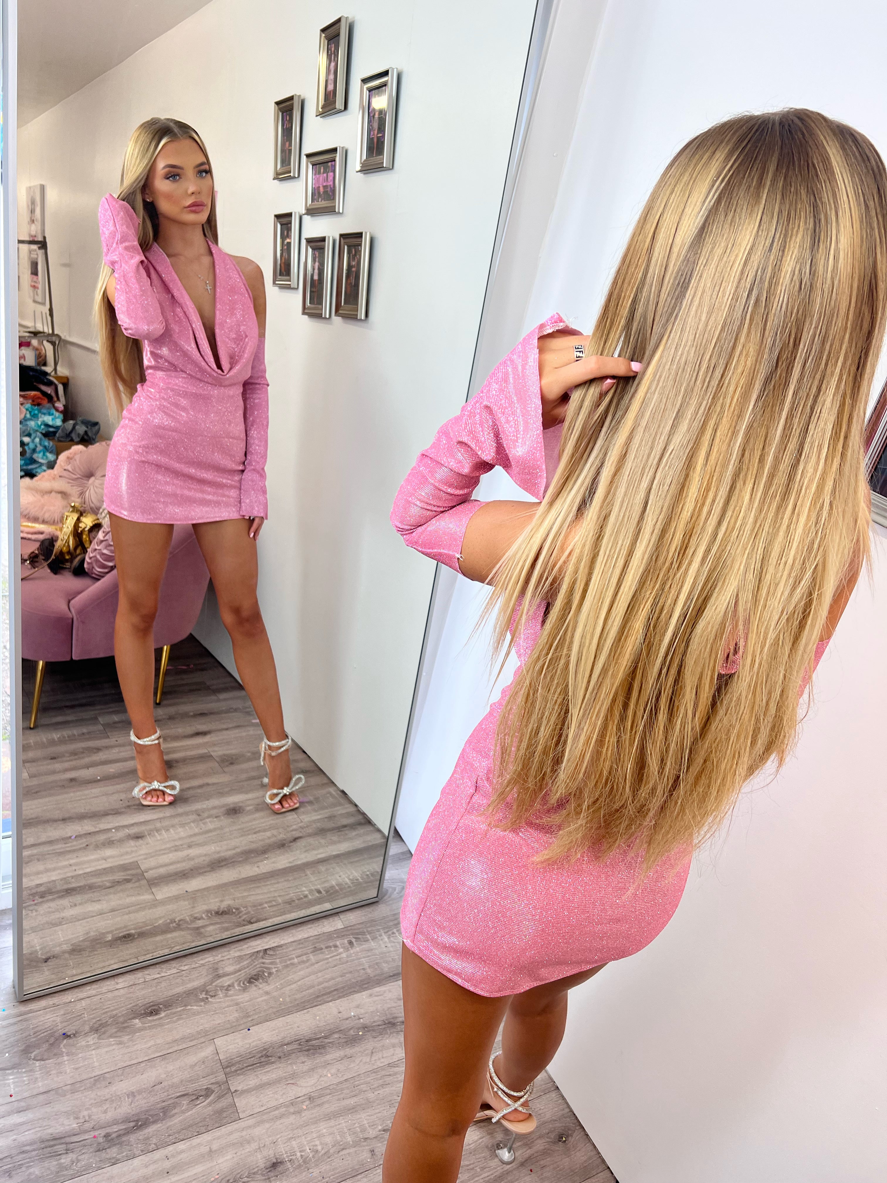 Pink Glitter Cowl Neck Dress & Fish Tail Sleeves