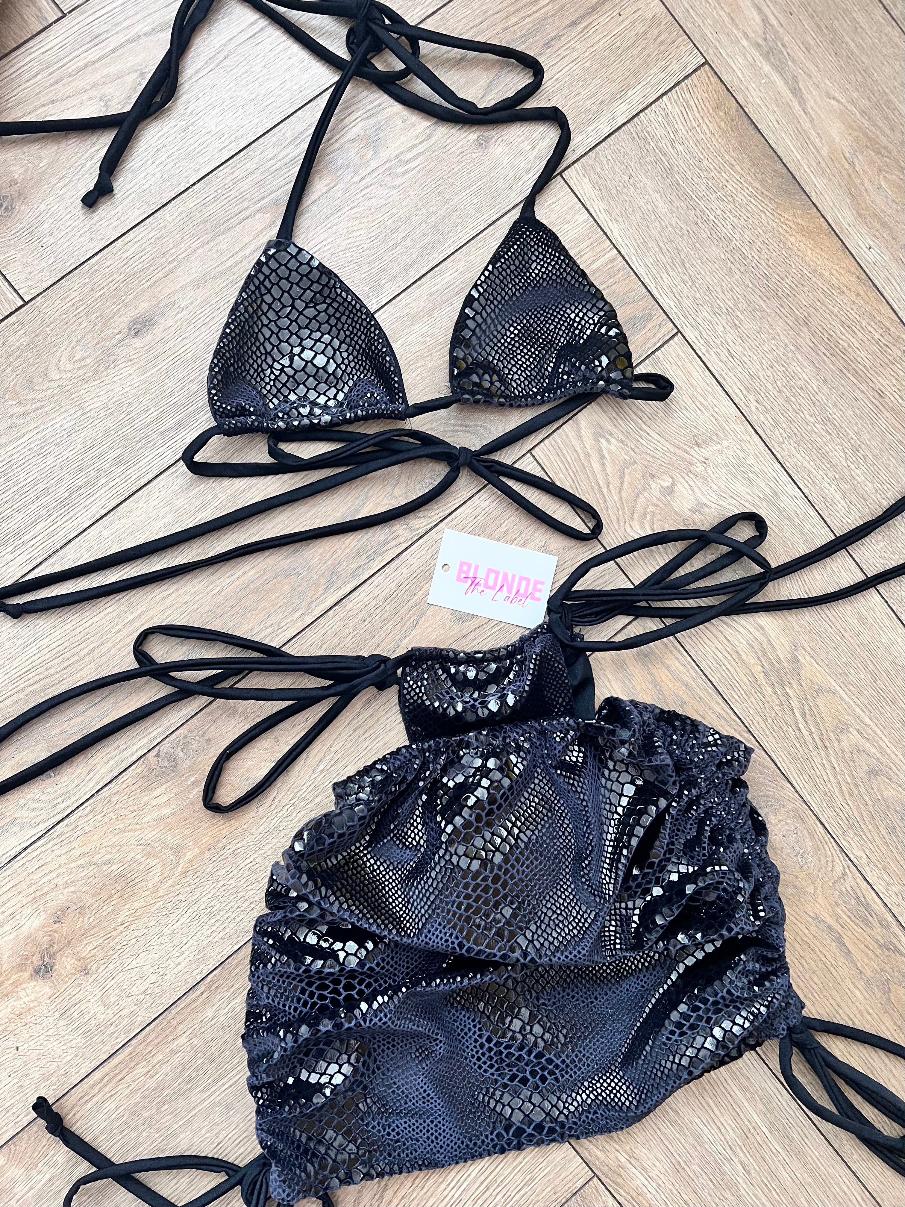 • Black snake foil print bikini