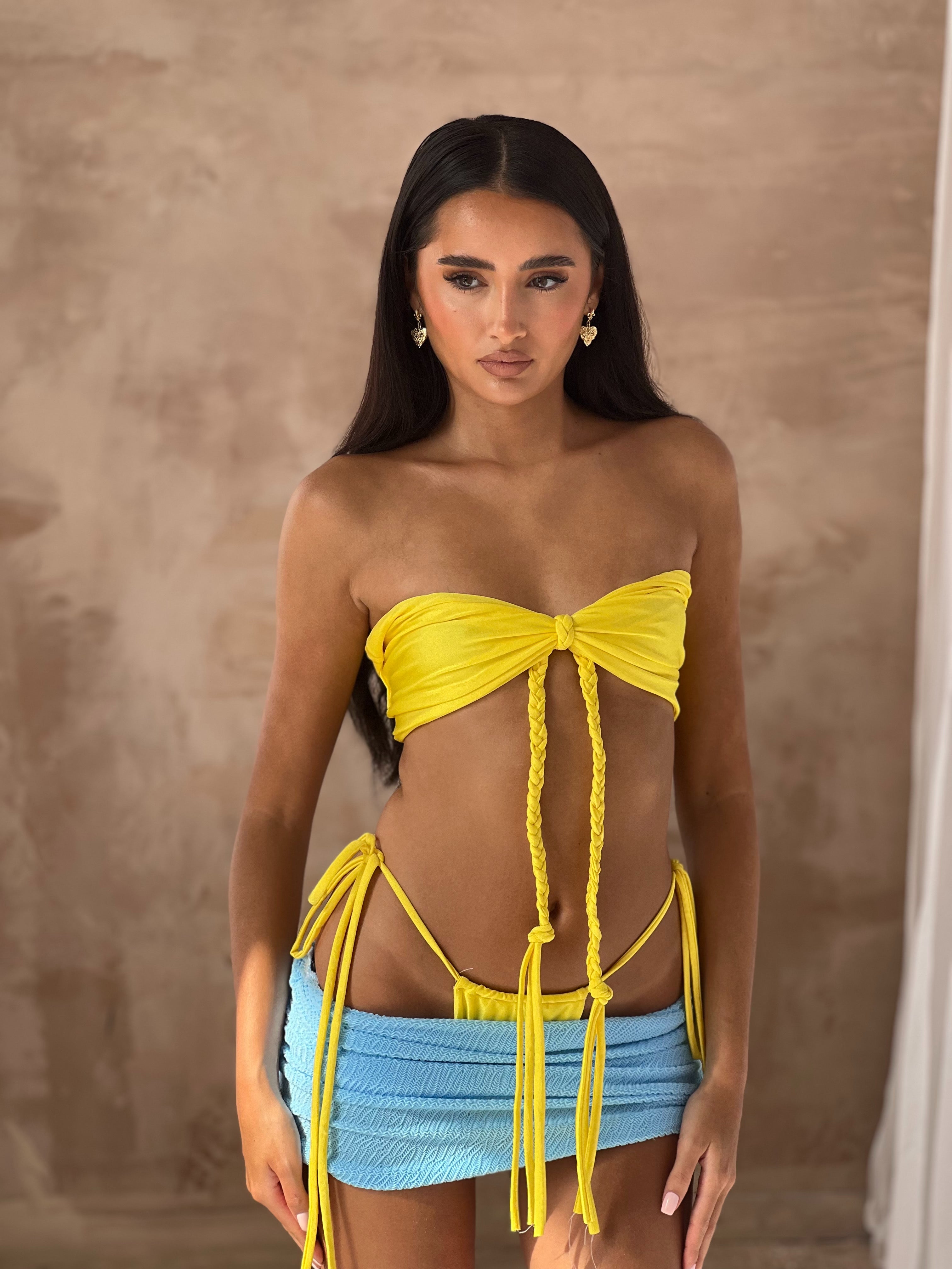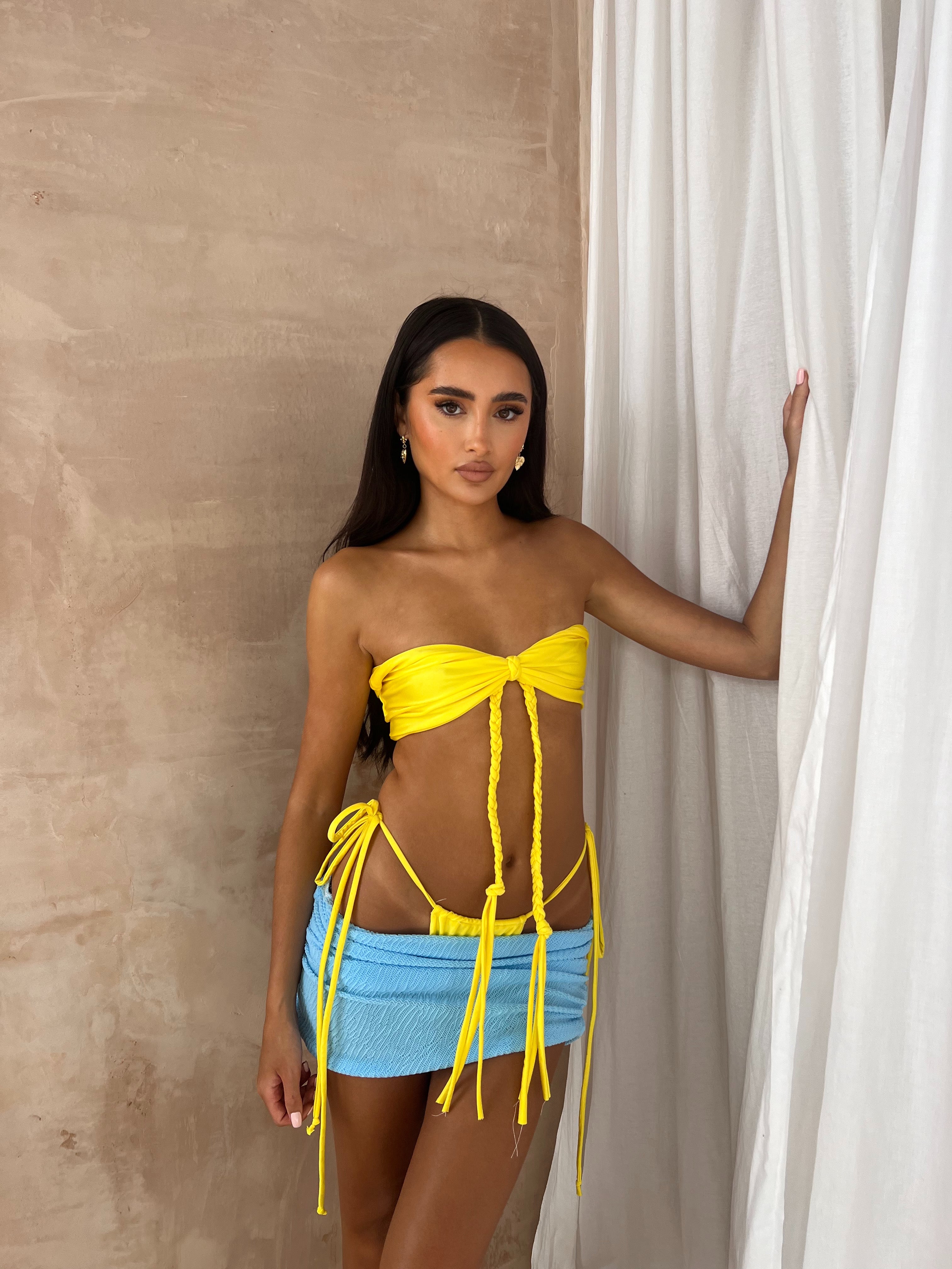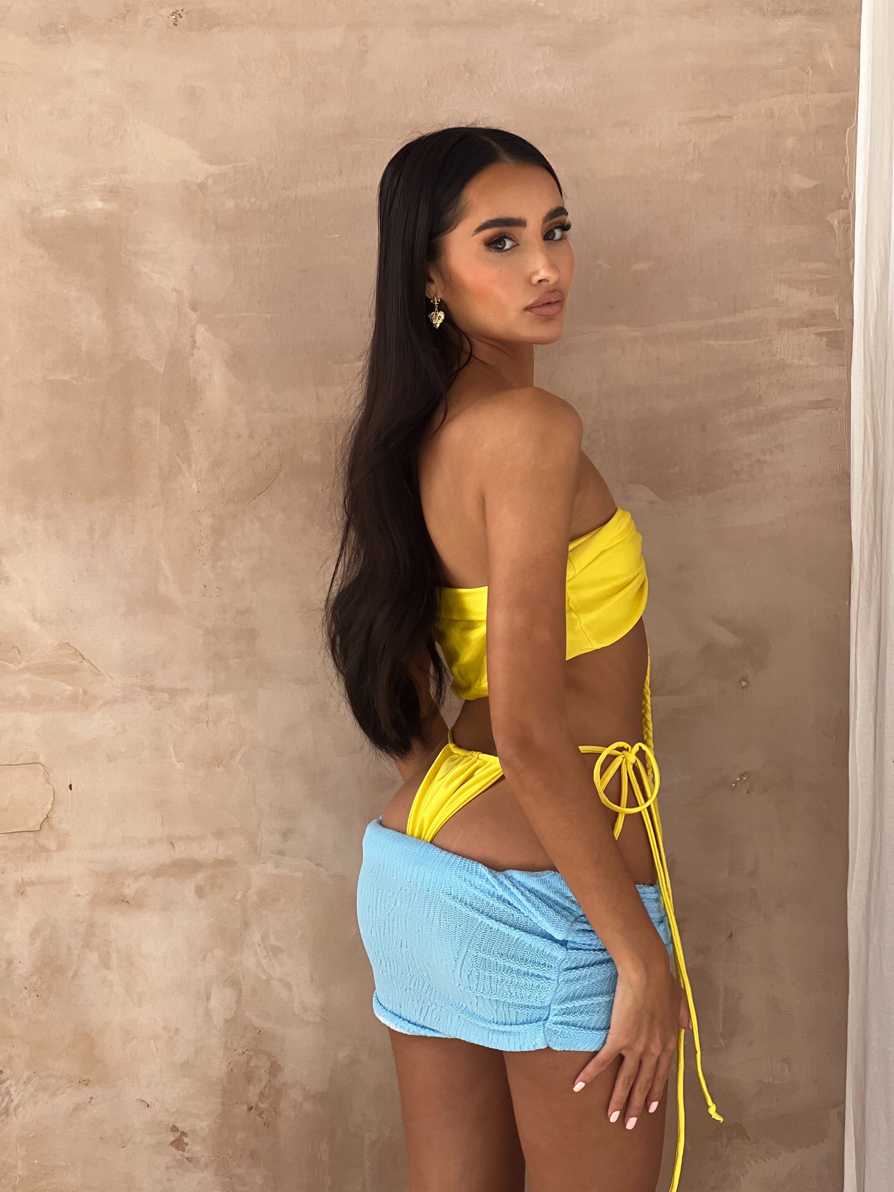 Ibiza Blue Crinkle Ruched Mini Skirt