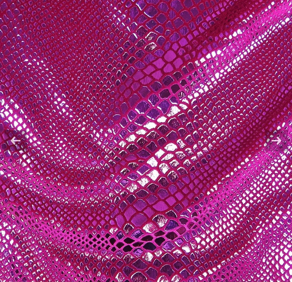 Snake print on velvet backed fabric lined with scuba crepe fabric. CHAINS NOT INCLUDED. Ruched skirt and top with a 3/4 sleeve. We can change colour and also the way its ruched which are the sides or down the middle and down the back.